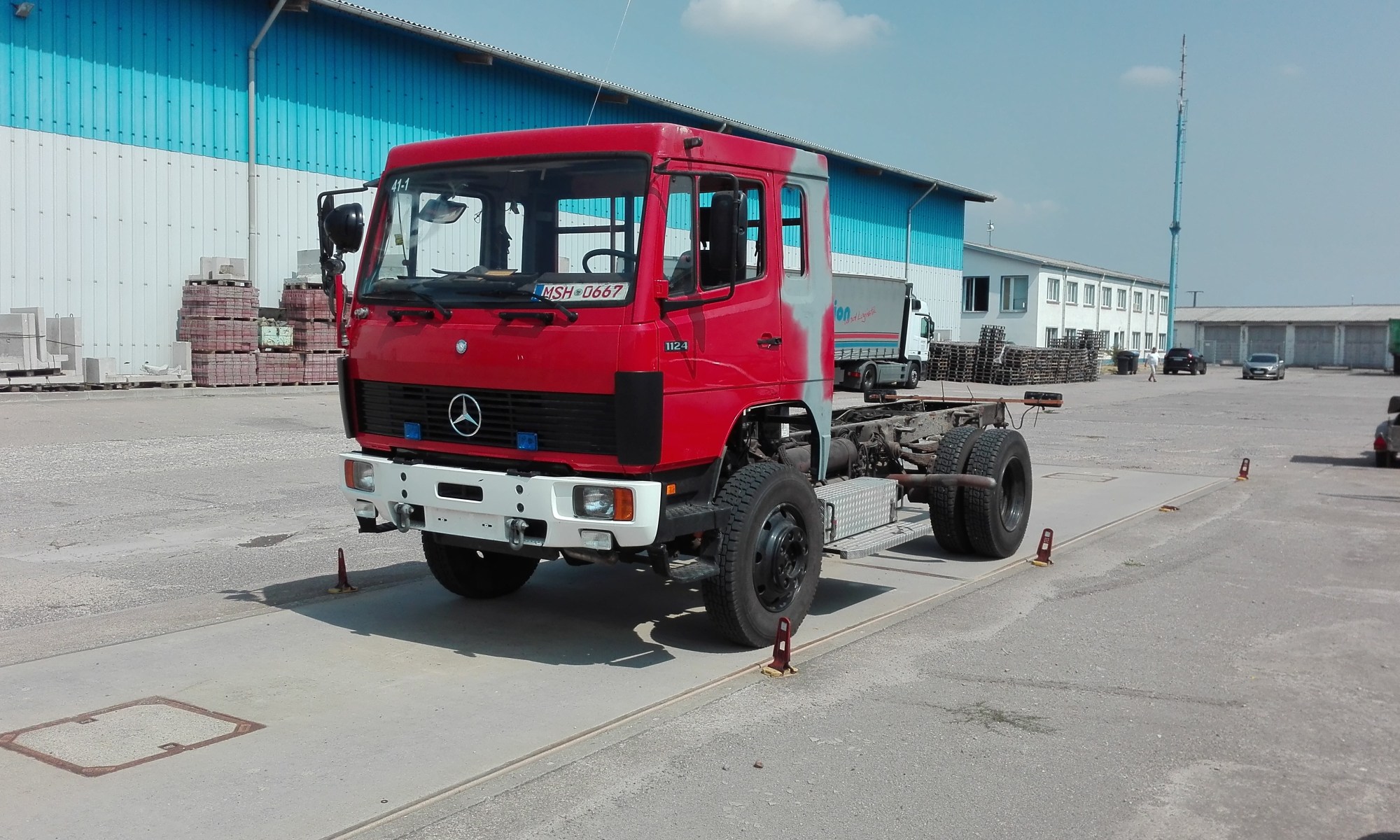 Die Waage zeigt 4,64 Tonnen!!! Trotz der Umbauten konnte ich Gewicht einsparen, ich bin begeistert. Für die luftgefederten Sitze sind circa 100kg veranschlagt. Der Zwischenrahmen wird 250kg wiegen. Also in Summe genau 5t…es bleibt spannend.