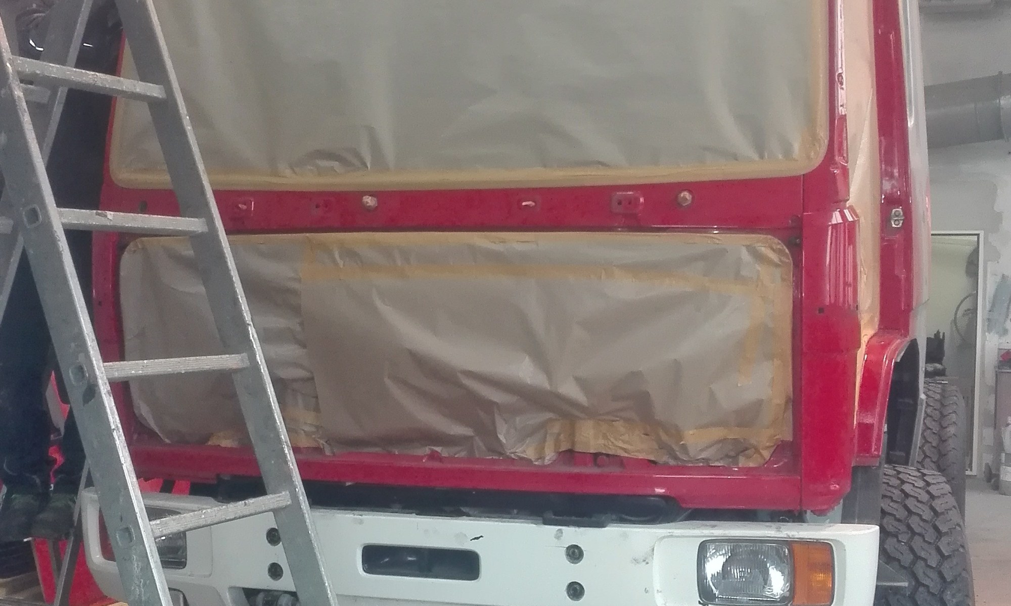 In der Zeit als ich auf die bestellten Sandwichplatten warten musste, waren viele andere Arbeiten zu erledigen. Den Alkoven hatte ich bereits zurück gebaut. Das Dach war eingeebnet. Radkästen, Tanks und anderes war beim Iveco verkleidet gewesen. Dazu waren die Seitenwände tiefer ausgeführt. Sie verlaufen schräg und geben dem Clou sein typisches Erscheinungsbild. Nicht nur …